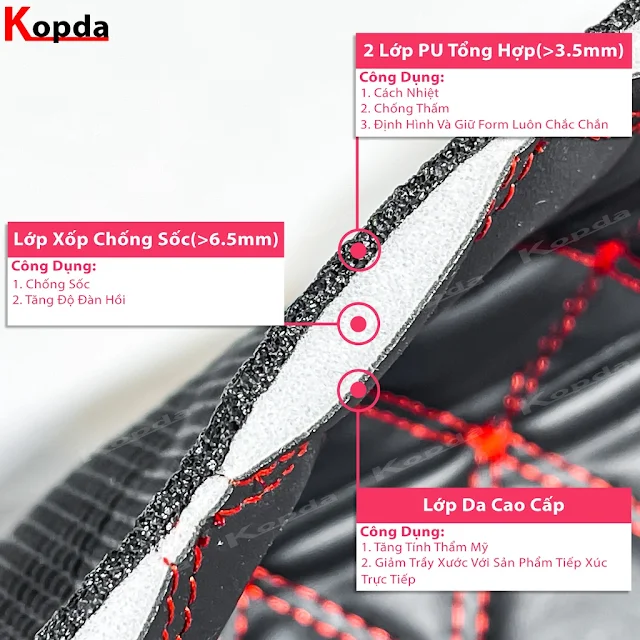 - Lót Cốp Da Cách Nhiệt Honda Dylan gia công tỉ mỉ từ 5 lớp chất liệu giúp chống nóng, chống sốc, chống thấm cực tốt